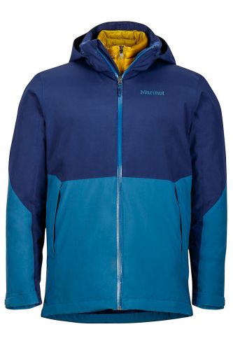 Универсальная куртка 3 в 1, с революционным синтетическим утеплителем 3M™ Thinsulate™ Featherless. Внутренняя куртка утеплена новым наполнителем, который имеет такие же тепловые характеристики, как и пух 700FP, но устойчив к влаге, и продолжает греть даже в сырую погоду. Внешняя куртка - это влагозащитный слой с мембраной Marmot® MemBrain® и показателями влагостойкости и дышимости 10/10 тыс. Каждую куртку можно использовать как по отдельности, так и состегнув вместе и получив при этом максимально теплый и защищенный от погодных условий комплект.