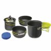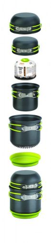 Набор алюминиевой посуды от чешского производителя Pinguin для 2 человек с теплообменным элементом на одной из емкостей, который позволяет экономить до 30% газа при использовании баллона. Набор состоит из 2 кастрюль, 2 крышек, 1 защитной крашки теплообменного жлемента, которую можно использовать как плоскую миску и 1 губки для мытья. Поверхностный слой анодирован, что придает изделиям огнестойкость, износостойкость. Меньшая кастрюля помещается в большую. Комплект обеспечивает безопасную транспортировку газовых баллонов и маленькой горелки. Горелка и картридж не включены в комплект. Особености: